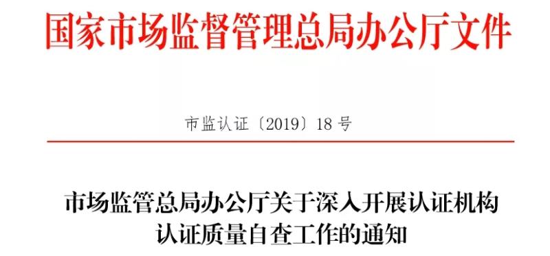 為進一步貫徹落實《市場監管總局關于加強認證檢測市場監管工作的通知》(國市監認證〔2018〕173號)及市場監管總局《假冒偽劣重點領域治理工作方案(2019—2021)》,督促認證機構落實主體責任,深入排查認證質量風險,推動質量認證工作規范健康發展,經市場監管總局同意,決定組織開展認證機構認證質量自查。現就有關事項通知如下: